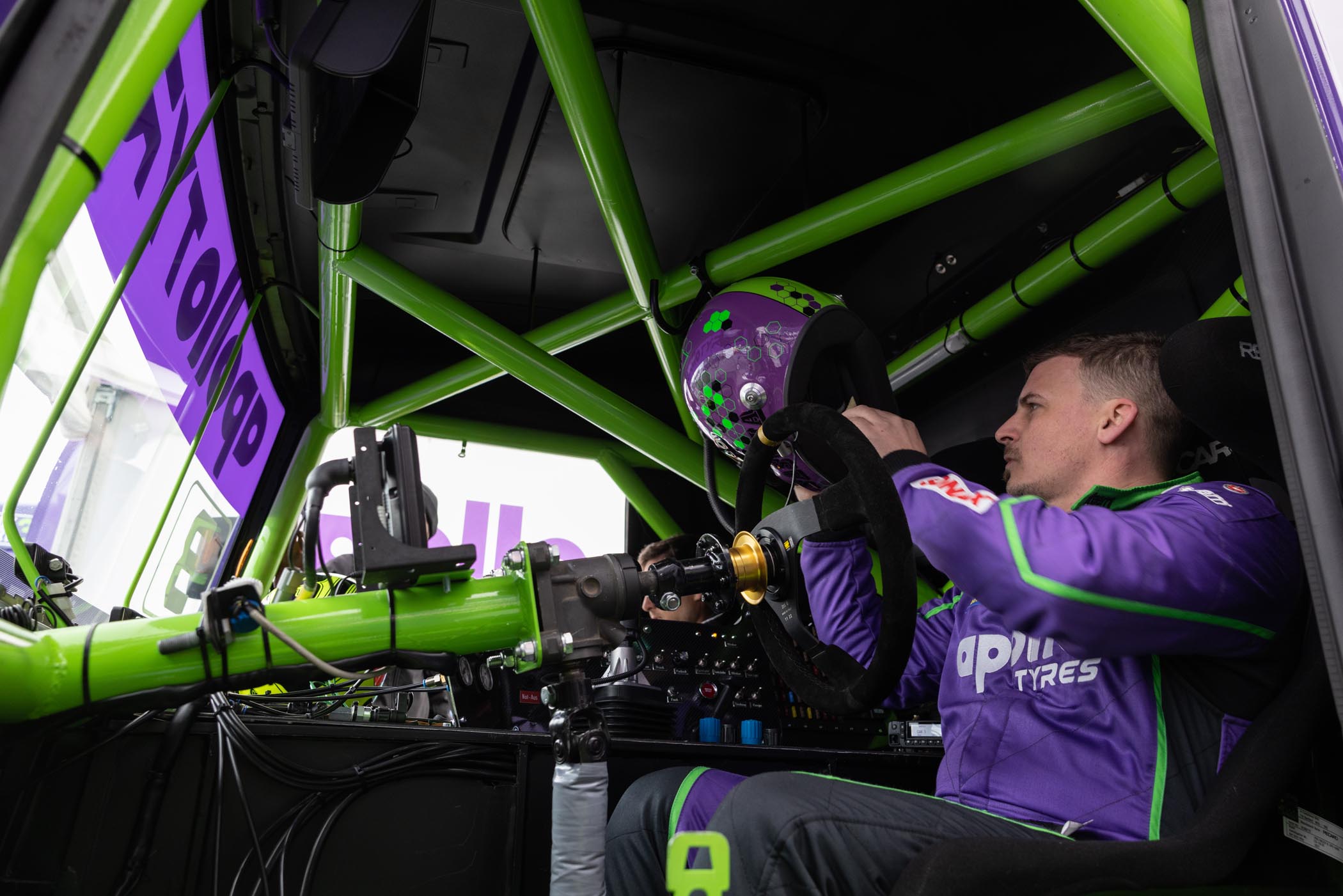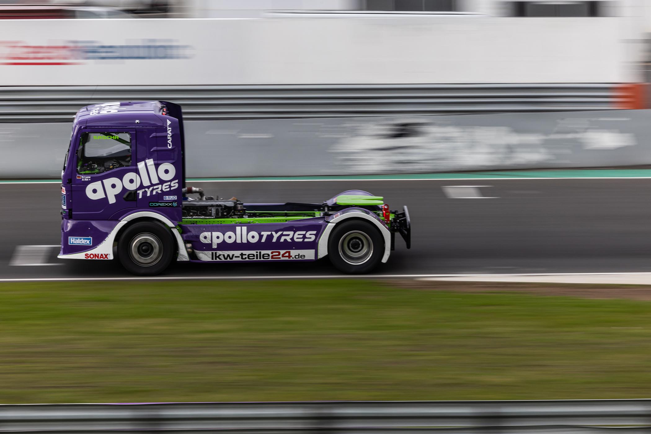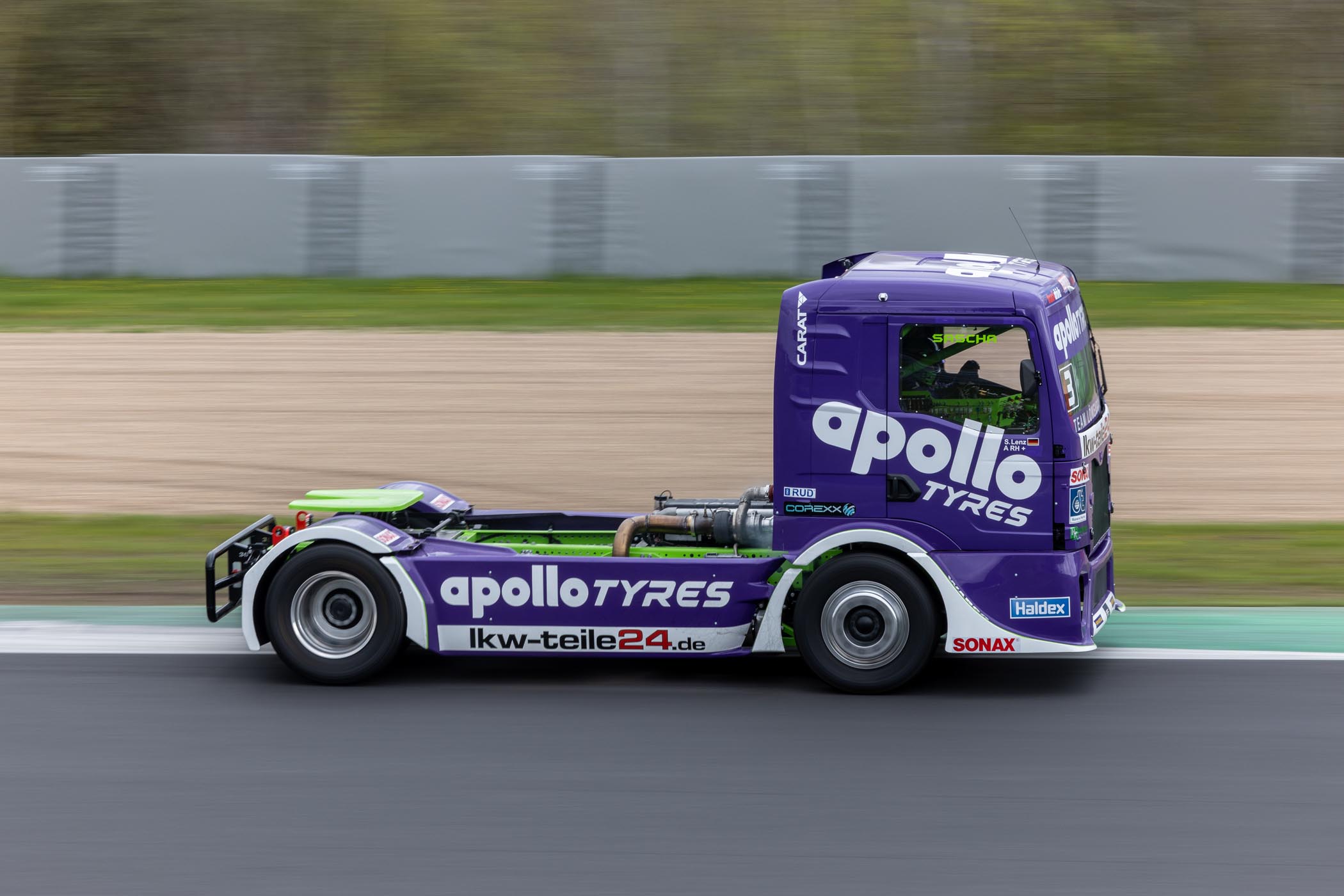 Teaming up with Apollo Tyres for the 2023 season, Sascha Lenz debuted a striking new truck with a vibrant purple livery. Throughout the season, he engaged in thrilling on-track battles and remained in contention for second place alongside Hahn and Antonio Albacete, ultimately securing third place in the standings.