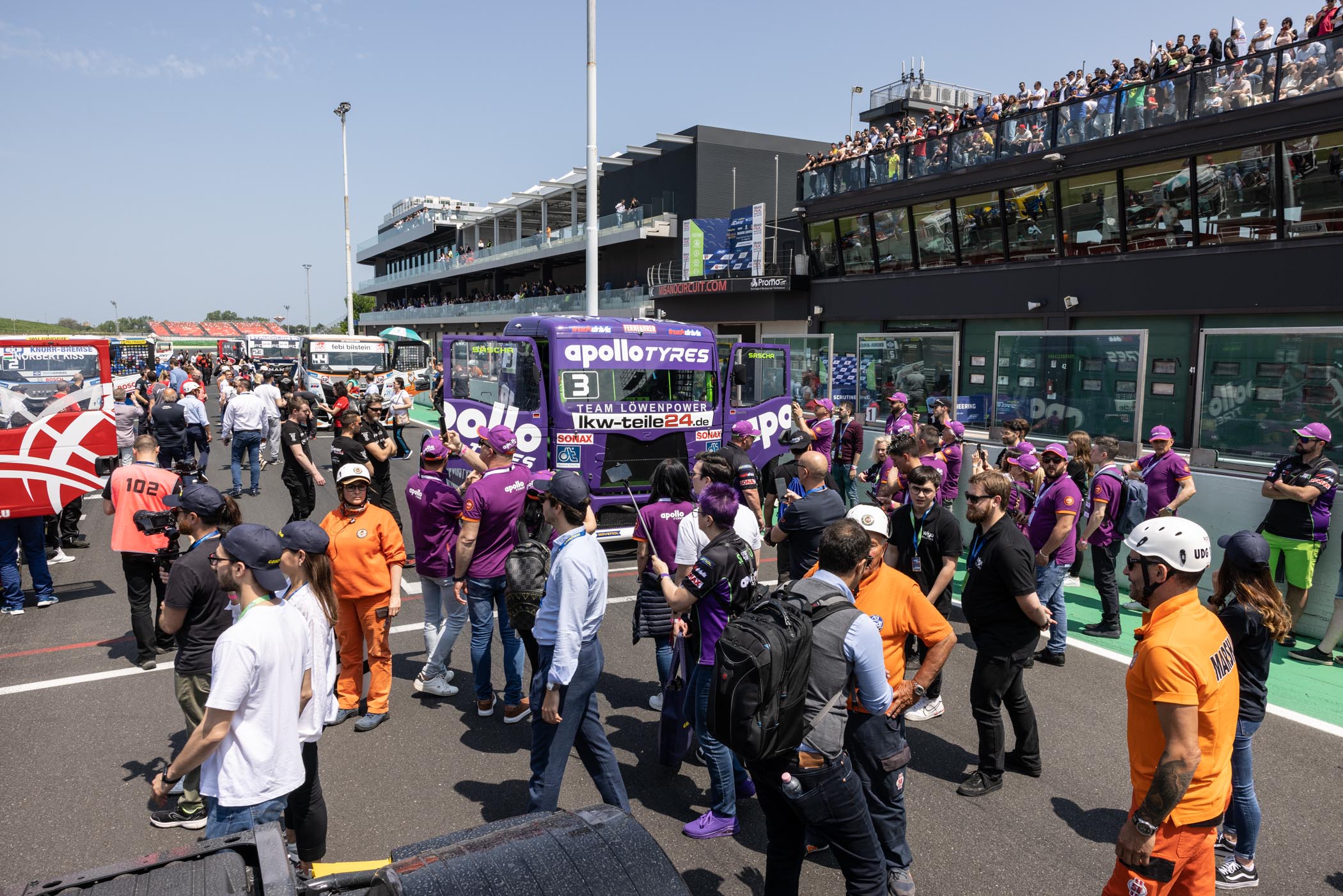 Teaming up with Apollo Tyres for the 2023 season, Sascha Lenz debuted a striking new truck with a vibrant purple livery. Throughout the season, he engaged in thrilling on-track battles and remained in contention for second place alongside Hahn and Antonio Albacete, ultimately securing third place in the standings.